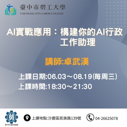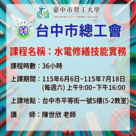 CopyRight 2026 Taichung City Labor College All Rights Reserved. Designed By