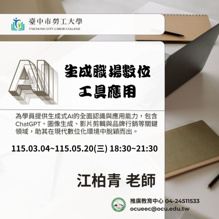 CopyRight 2026 Taichung City Labor College All Rights Reserved. Designed By