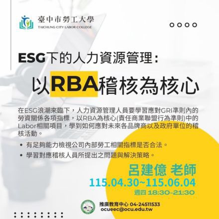 ESG下的人力資源管理:以RBA稽核為核心